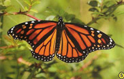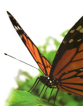5. A Monarca fêmea adulta. Veias mais grossas e a falta de nódulos nas  veias das asas posteriores e superiores separam a fêmea do macho da  Monarca.